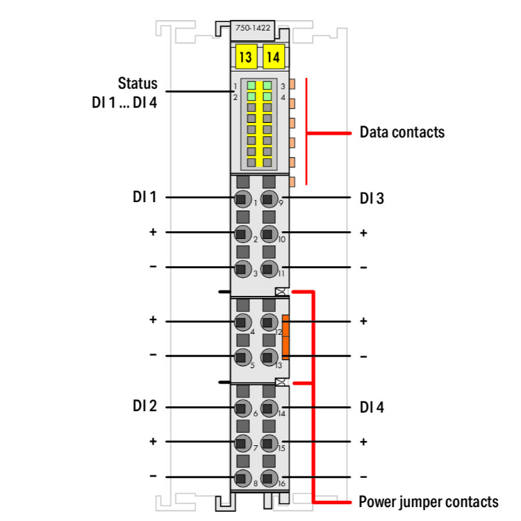 WAGO | 750-1422 | 4-CHANNEL DIGITAL INPUT; 24 VDC; 3 MS; LOW