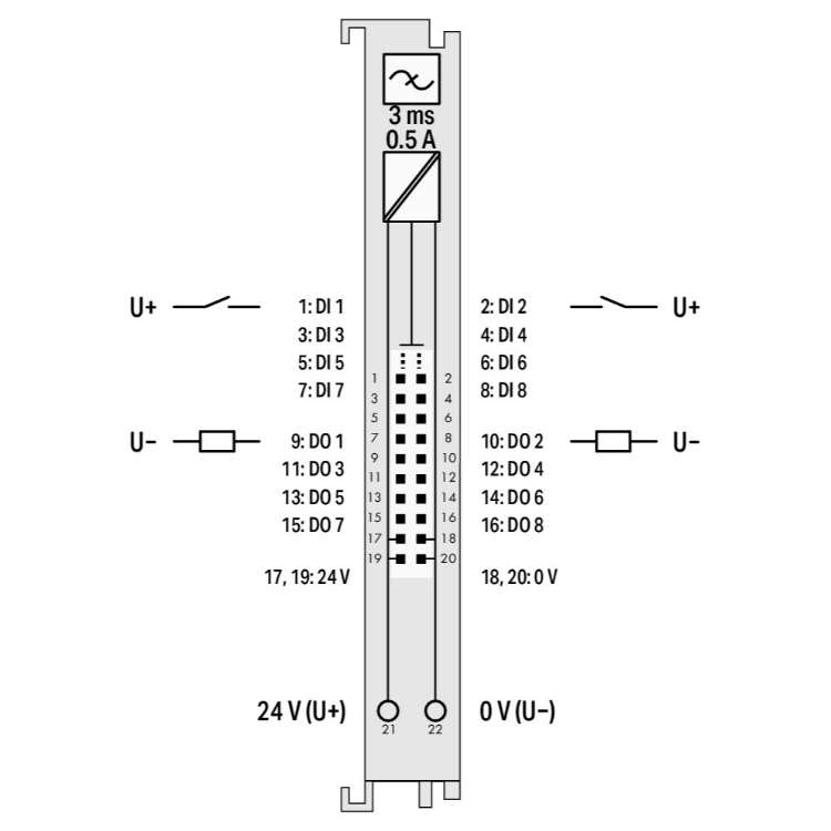 WAGO | 750-1502 | 8-CHANNEL DIGITAL INPUT/OUTPUT; 24 VDC; 0.