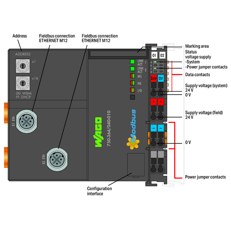 WAGO | 750-364/040-010 | FC MODBUS TCP M12 G4 XTR