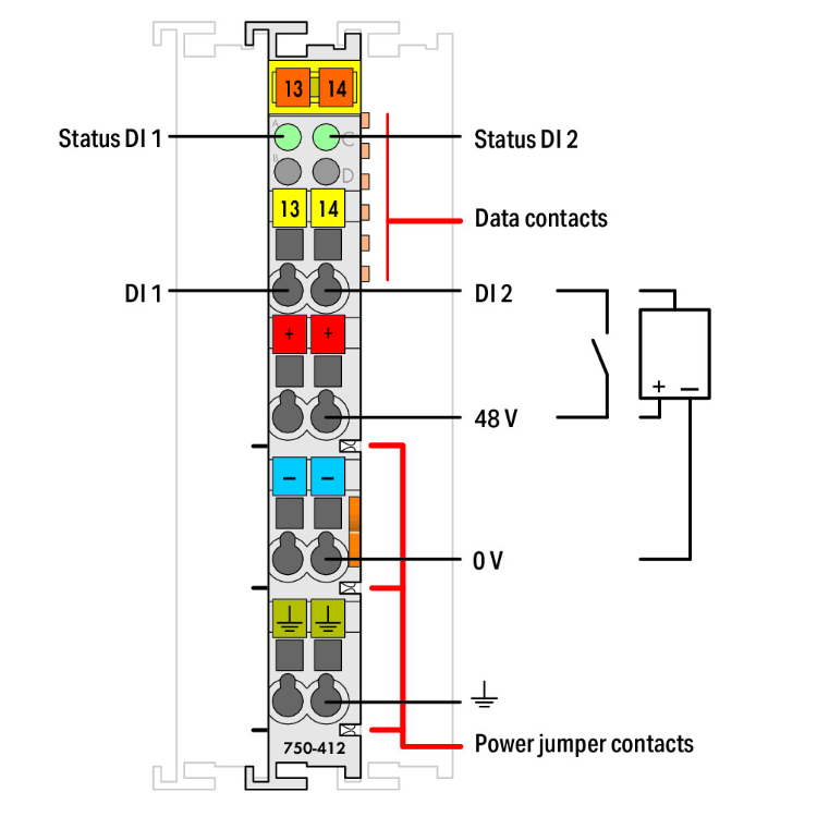 WAGO | 750-412 | 2-CHANNEL DIGITAL INPUT; 48 VDC; 3 MS; LIGH