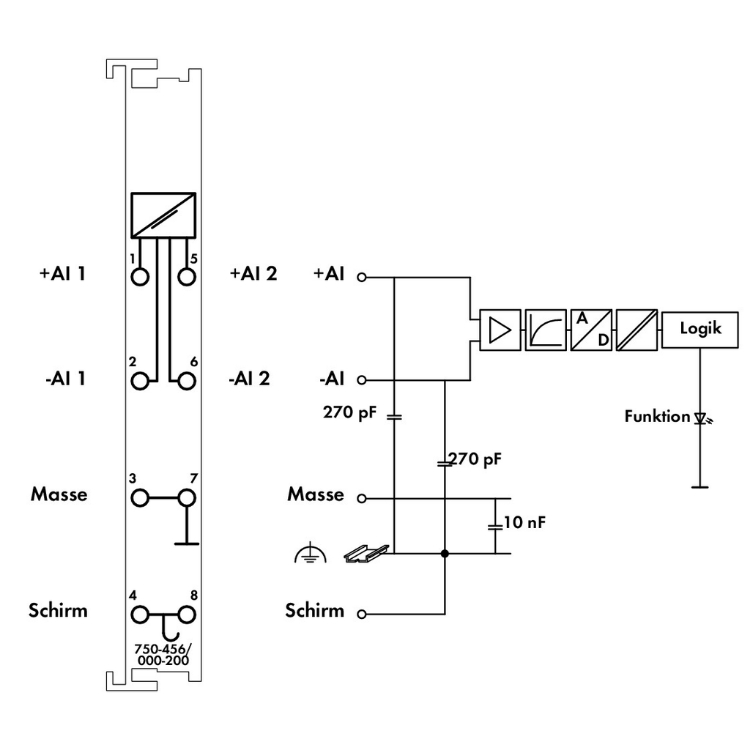 WAGO | 750-456/000-200 | 2-CHANNEL ANALOG INPUT; ±10 VDC; DI