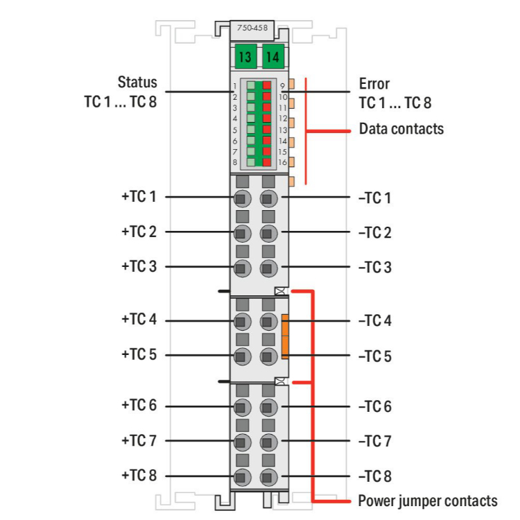 WAGO | 750-458 | 8-CHANNEL ANALOG INPUT; THERMOCOUPLE; ADJUS