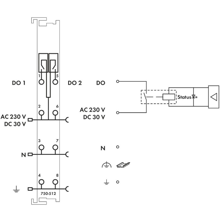 WAGO | 750-512 | 2-CHANNEL RELAY OUTPUT; AC 250 V; 2.0 A; 2
