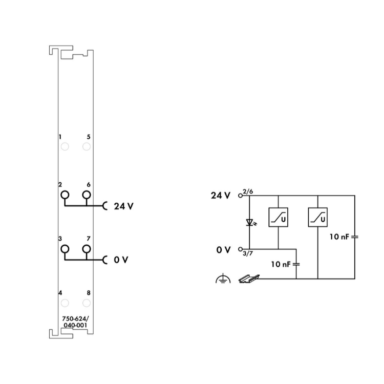 WAGO | 750-624/040-001 | FILTER MODULE FOR FIELD-SIDE POWER