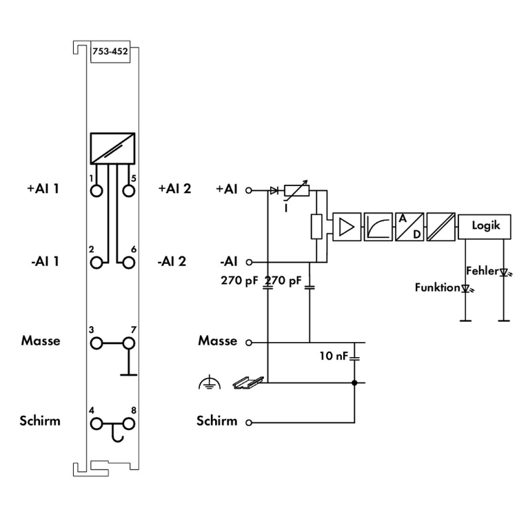 WAGO | 753-452 | 2-CHANNEL ANALOG INPUT; 0 … 20 MA; DIFFEREN