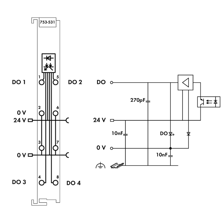 WAGO | 753-531/000-800 | 4DO, 24 VDC 0.5A IF 2-WIRE
