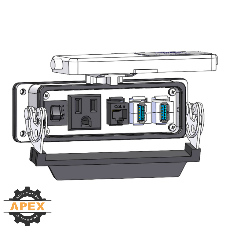 A Panel Interface Connector (PIC) is a device that typically mounts to the outside of a control panel housing a PLC, computer, or other type of programmable device. Once in place, the PIC, which houses convenient pass through connections, allows the user to interface with the computer, PLC, or other devices inside the control panel. These convenient access ports eliminate the need to open the panel door, creating a safer environment on the shop floor, and helping the user adhere to the safety standards set forth by NFPA 70E. With well over 2000 designs, Mencom is sure to have the configuration you need. If we do not, just contact one of our design engineers and we will work with you to create the solution you need.