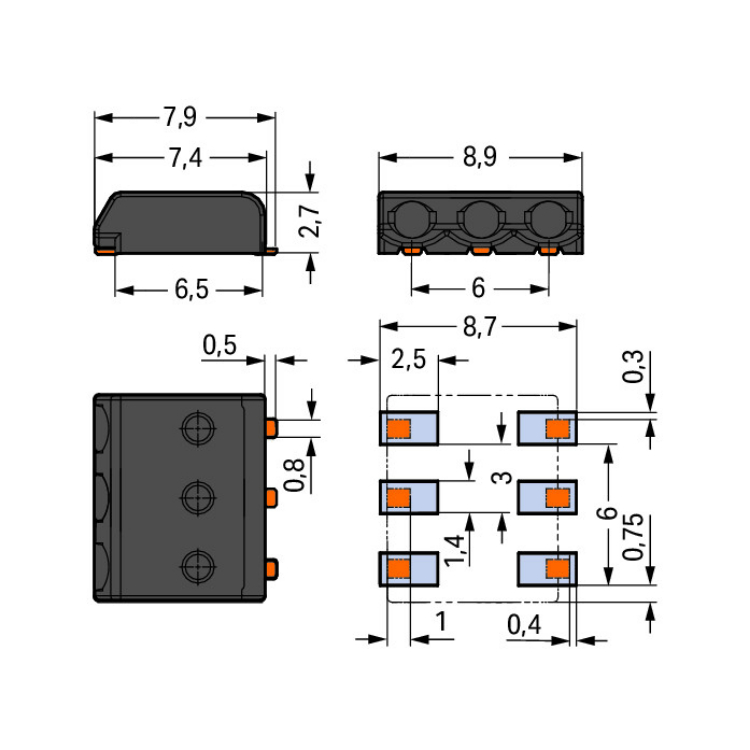 WAGO | 2059-323/998-403 | SMD PCB TERMINAL BLOCK; 0.5 MM²; P