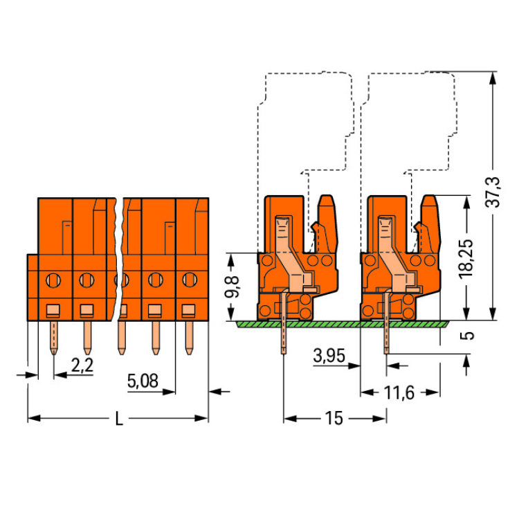 WAGO | 232-168 | THT FEMALE HEADER; 0.6 X 1.0 MM SOLDER PIN;