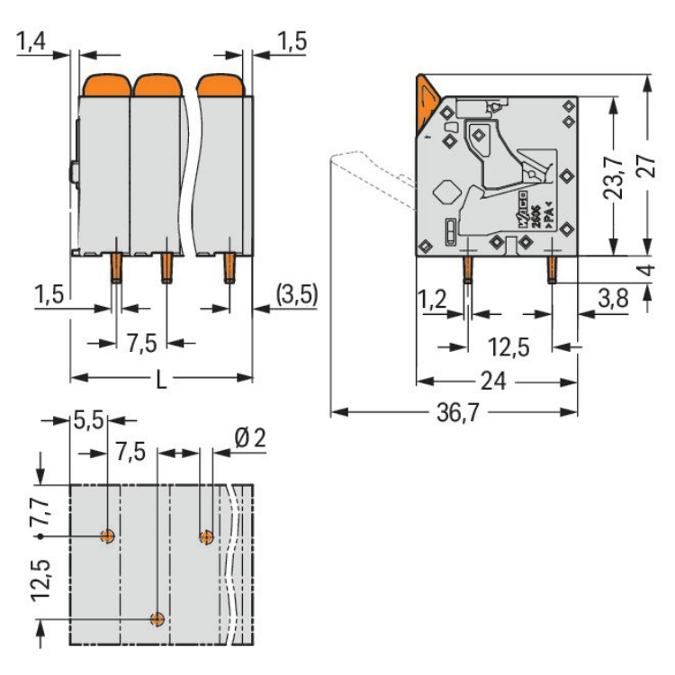 WAGO | 2606-3110/020-000 | PCB TERMINAL BLOCK; LEVER; 6 MM²;