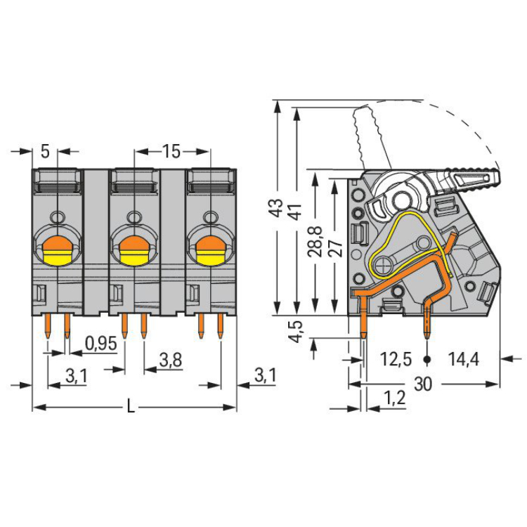 WAGO | 2716-203 | PCB TERMINAL BLOCK; LEVER; 16 MM²; PIN SPA