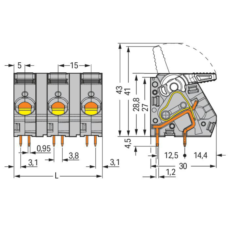 WAGO | 2716-208 | PCB TERMINAL BLOCK; LEVER; 16 MM²; PIN SPA