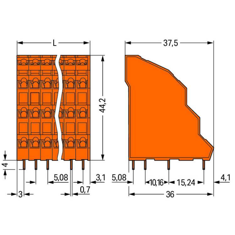 WAGO | 738-312 | QUADRUPLE-DECK PCB TERMINAL BLOCK; 2.5 MM²;