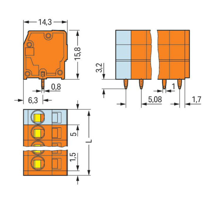 WAGO | 739-155 | PCB TERMINAL BLOCK; 2.5 MM²; PIN SPACING 5.
