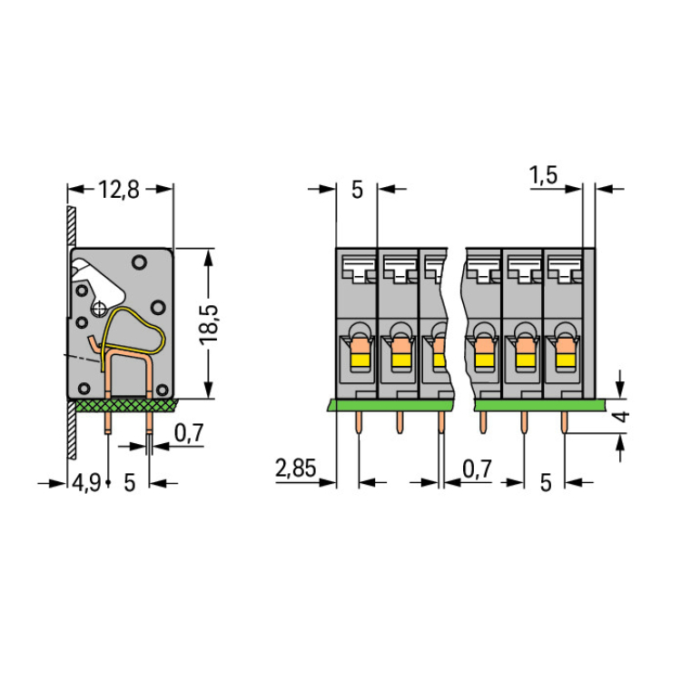 WAGO | 741-108 | PCB TERMINAL BLOCK; PUSH-BUTTON; 2.5 MM²; P