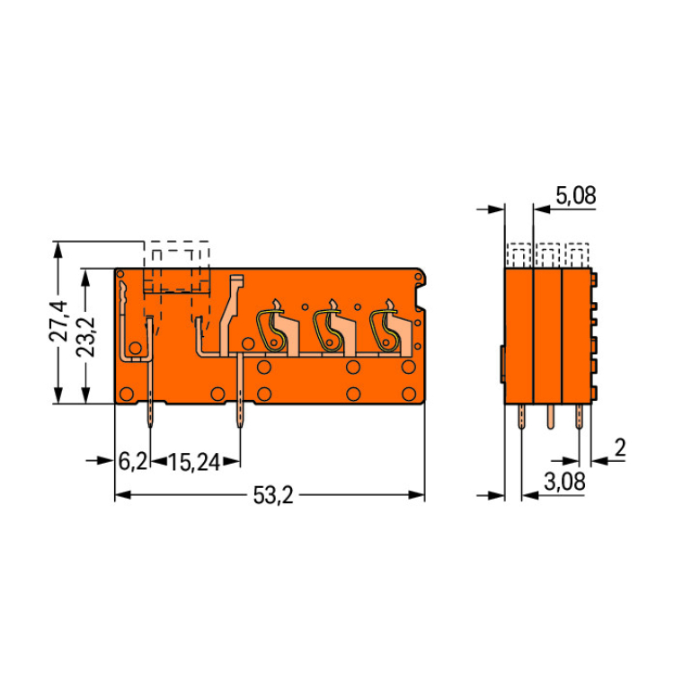 WAGO | 742-168 | STACKABLE 3-CONDUCTOR PCB TERMINAL BLOCK; W