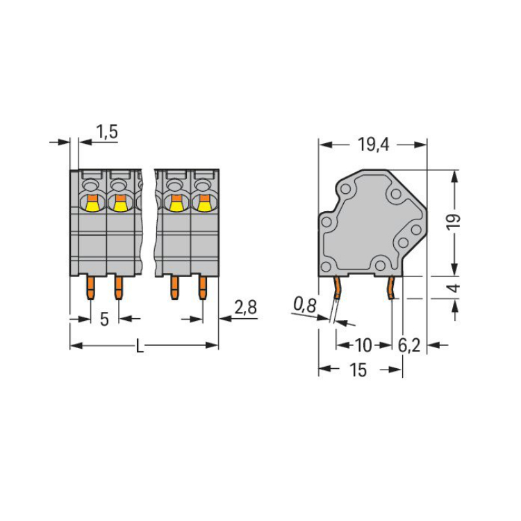 WAGO | 745-3105 | PCB TERMINAL BLOCK; 4 MM²; PIN SPACING 5 M