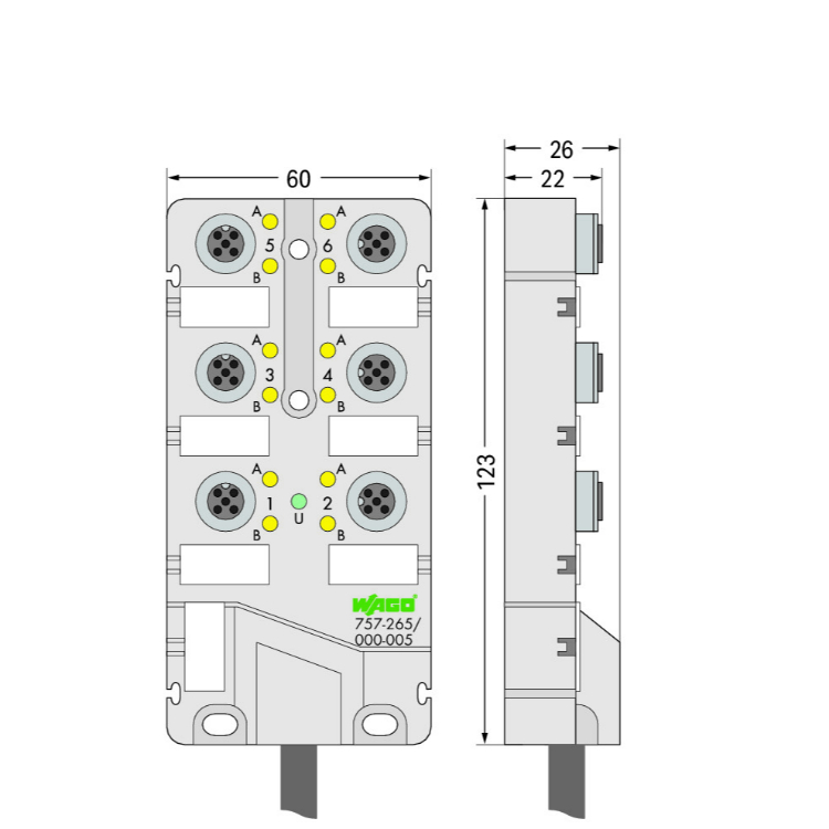 WAGO | 757-265/000-005 | M12 SENSOR/ACTUATOR BOX; 6-WAY; 5-P