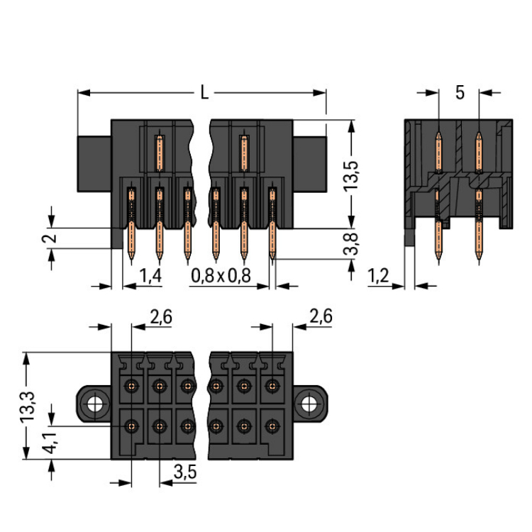 WAGO | 713-1466/107-000 | THT MALE HEADER, 2-ROW; 0.8 X 0.8