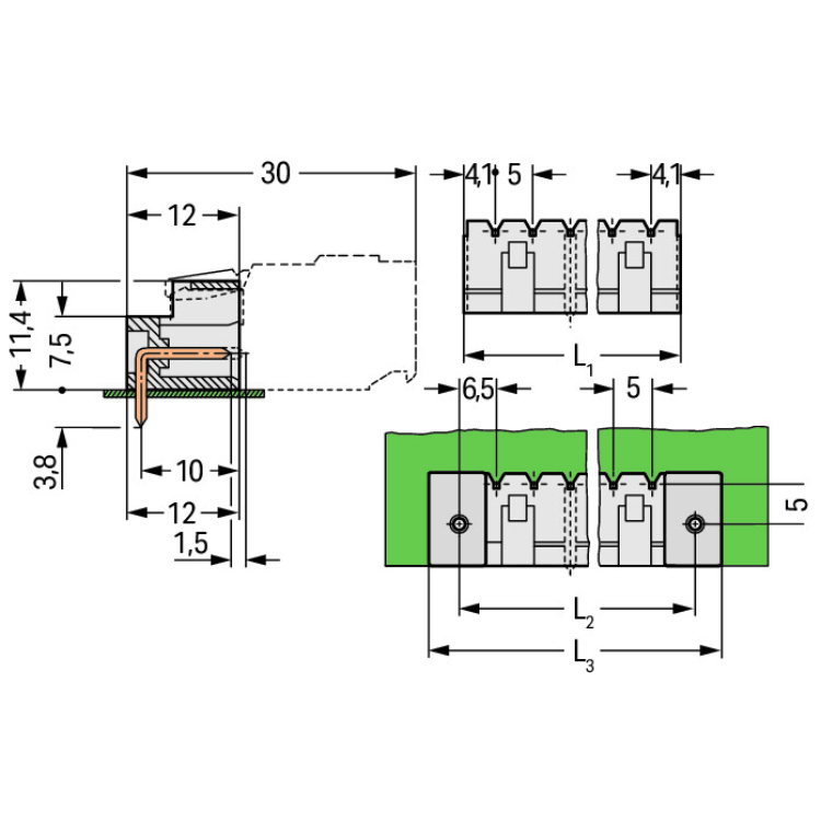WAGO | 721-438/001-000 | THT MALE HEADER; 1.0 X 1.0 MM SOLDE