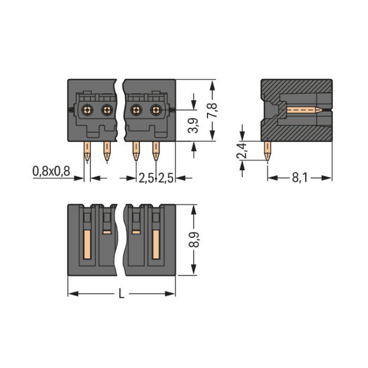 WAGO | 733-372/105-604/997-406 | THR MALE HEADER; 0.8 X 0.8